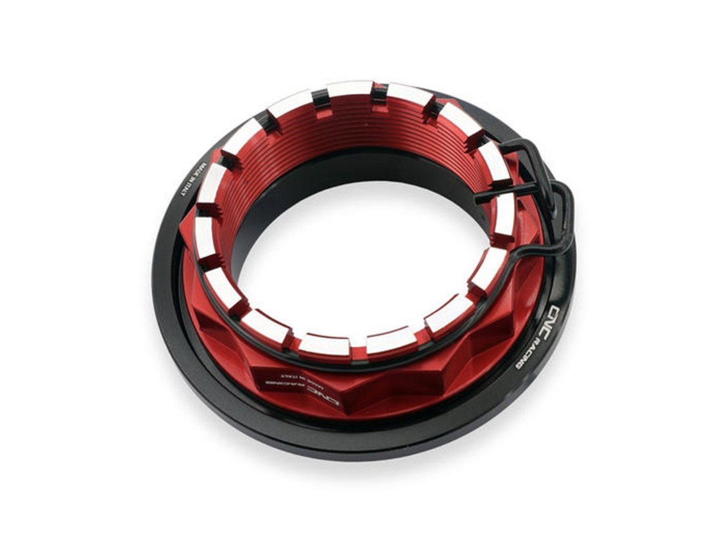 CNC Racing safety clip for Ducati rear wheel nut made of painted harmonic steel.Ā Plug & Play: replaces the original part without any modification.