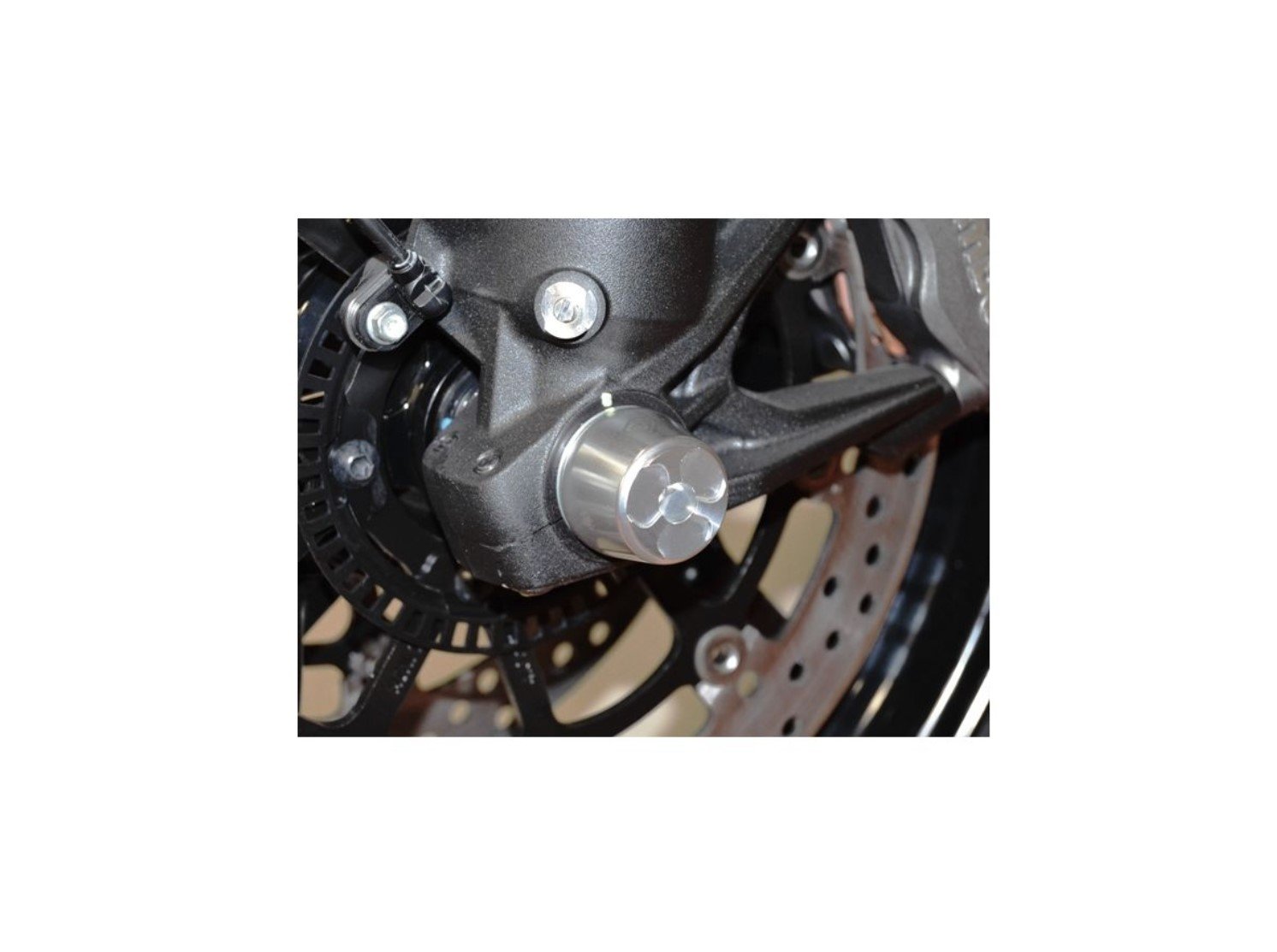 Worked by full aluminum 7075 t6, anodizing surface colored. Kit ready for assembly, assembly on the front wheel stud, protects legs fork in case of fall.Ā DUCABIKE designs, develops, manufactures and markets its products, based on experience in all the years on road and in racing to do every effort to give the maximum reliable and guarantee on products, find the design and the best performance, utilize support of our prepared technicians and the best test pilot, employing the best materials and the innovative technology in the motorbike world, this offer products always at the top.