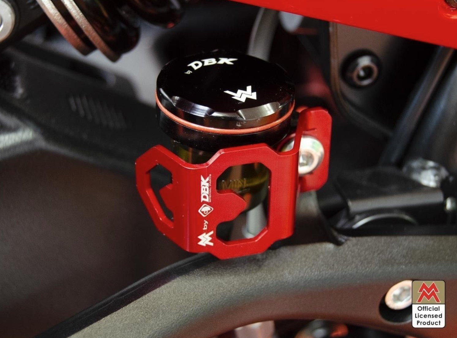 Rear brake fluid tank protection in aluminum alloy.Ā Laser cut with subsequent surface colored anodization treatment.Ā Plug and play