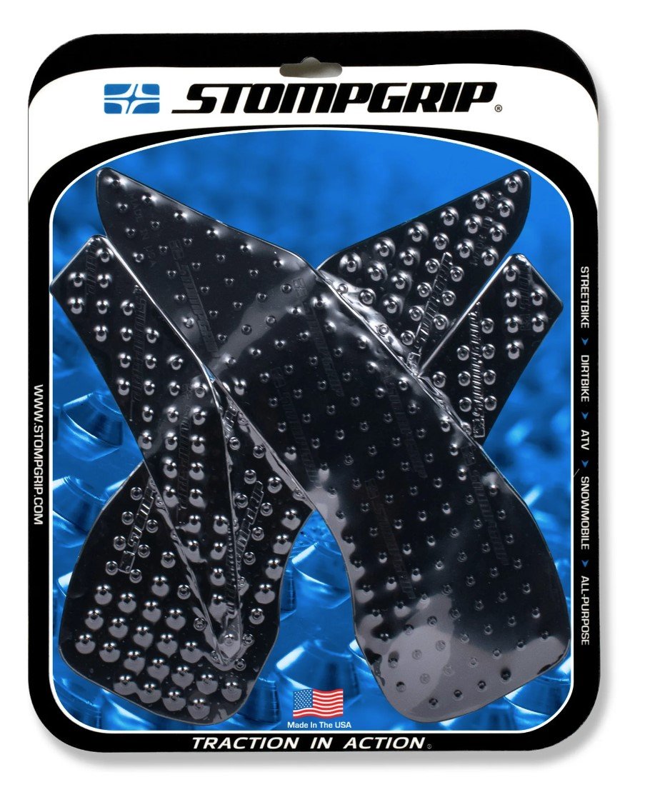 Pre-formed stickers for all road and off-road motorcycles that improve grip on the tank, helping the body in both braking and cornering situations, without damaging the graphics of the bike that remain, in the transparent version, however visible. Stompgrip anti-slip grips are used by the best MotoGP and Superbike teams.