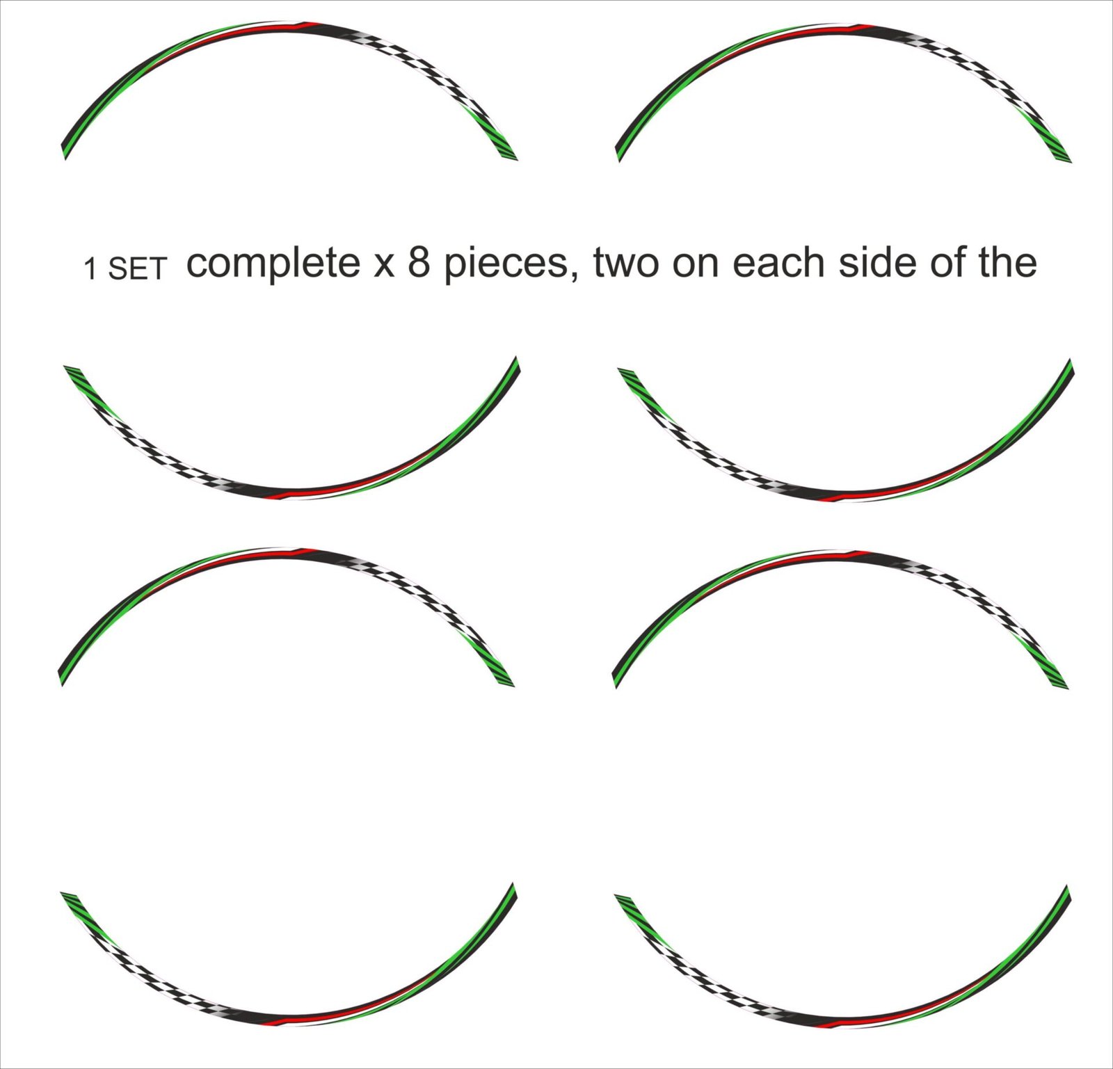 2 decals per side (total of 4 decals for 1 wheel)